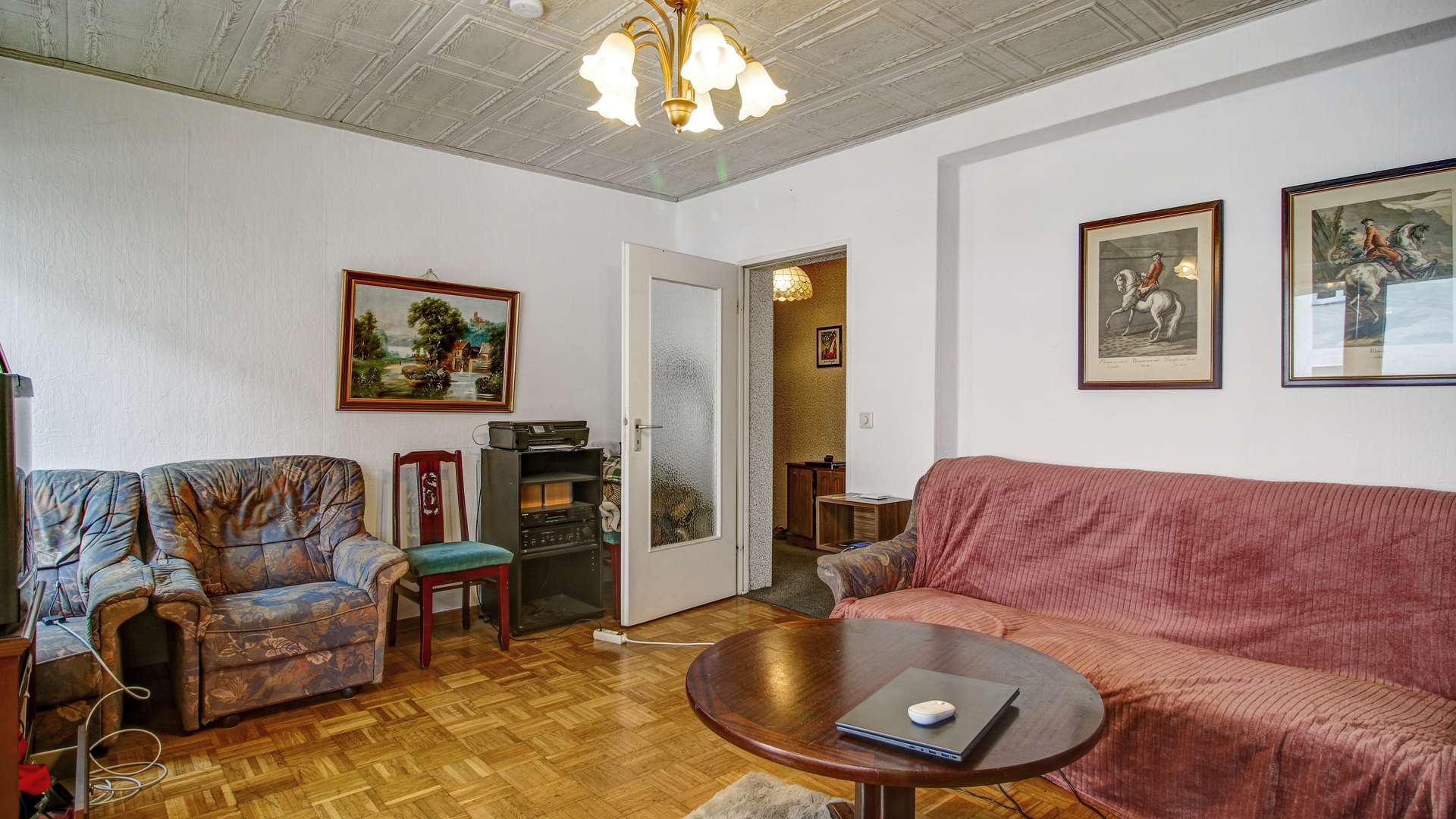 Das helle Wohnzimmer bietet ausreichend Platz für eine gemütliche Sitzecke sowie einen Essbereich. Von hier aus haben Sie direkten Zugang zum Balkon.