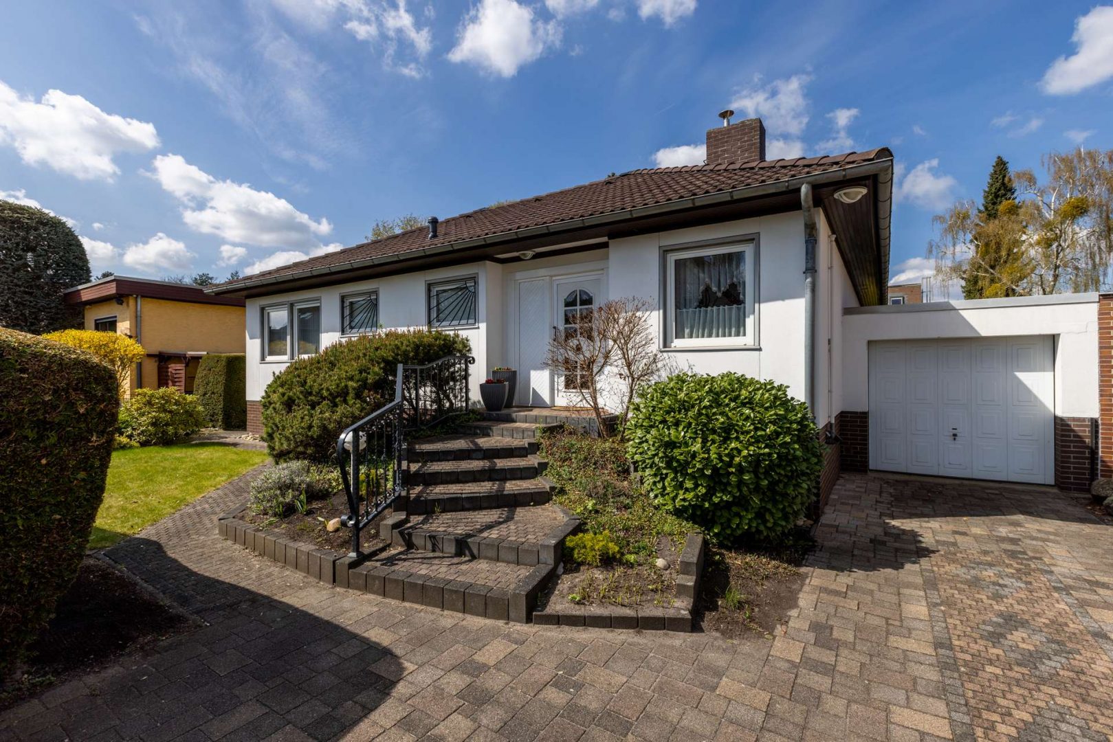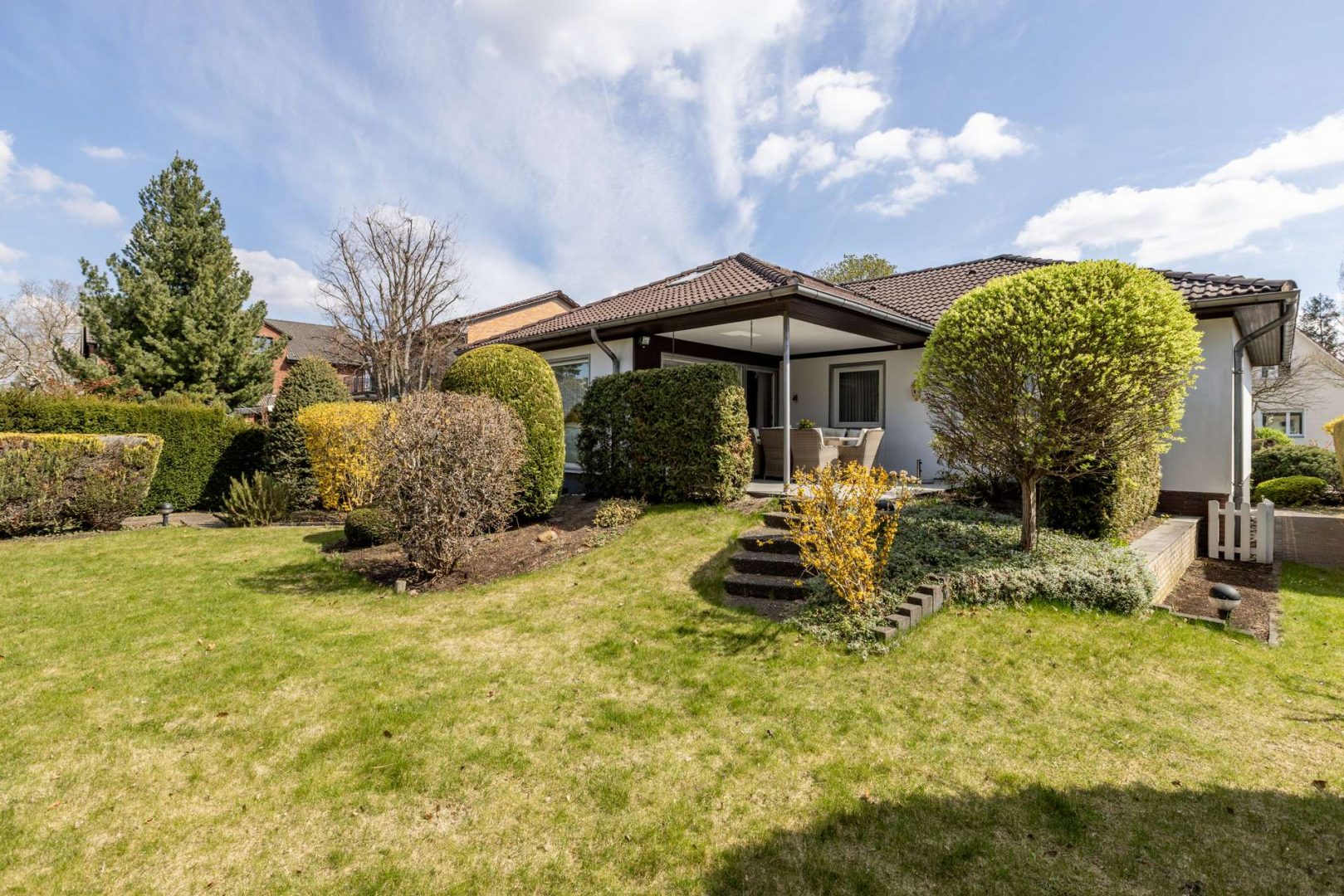 Dieser Winkelbungalow vereint klassischen Stil, Komfort und eine durchdachte Raumaufteilung auf ca. 115 m² Wohnfläche.